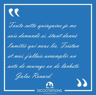 Toute cette quinzaine je me suis demandé si, étant donné l'amitié qui nous lie, Tristan et moi, j'allais accomplir un acte de courage ou de lâcheté.