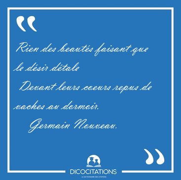 ![Rien des beautés faisant que le désir détale Devant leurs [...] - Germain Nouveau... Rien des beautés faisant que le désir détale Devant leurs [...] - Germain Nouveau...](/imagescitations/Rien_des_beautes_faisant_que_le_desir_detale_Devant_leurs_-_Germain_Nouveau-79504.jpg)