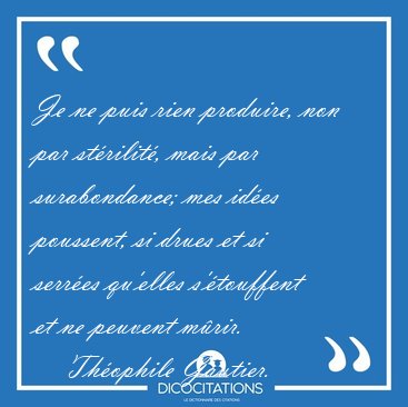 ![Je ne puis rien produire, non par stérilité, mais par [...] - Théophile Gautier... Je ne puis rien produire, non par stérilité, mais par [...] - Théophile Gautier...](/imagescitations/Je_ne_puis_rien_produire_non_par_sterilite_mais_par_-_Theophile_Gautier-79740.jpg)
