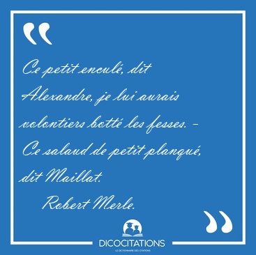 ![Ce petit enculé, dit Alexandre, je lui aurais volontiers botté [...] - Robert Merle... Ce petit enculé, dit Alexandre, je lui aurais volontiers botté [...] - Robert Merle...](/imagescitations/Ce_petit_encule_dit_Alexandre_je_lui_aurais_volontiers_botte_-_Robert_Merle-81372.jpg)