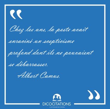 Chez les uns, la peste avait enraciné un scepticisme profond dont ils ne pouvaient se débarrasser.