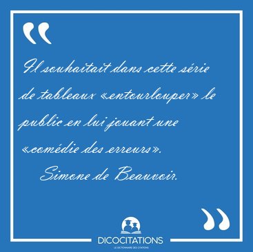 ![Il souhaitait dans cette série de tableaux «entourlouper» le [...] - Simone de Beauvoir... Il souhaitait dans cette série de tableaux «entourlouper» le [...] - Simone de Beauvoir...](/imagescitations/Il_souhaitait_dans_cette_serie_de_tableaux_entourlouper_le_-_Simone_de_Beauvoir-81817.jpg)