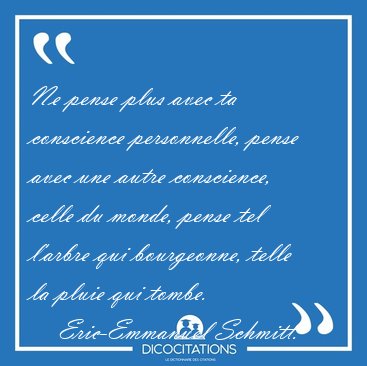 ![Ne pense plus avec ta conscience personnelle, pense avec une [...] - Eric-Emmanuel Schmitt... Ne pense plus avec ta conscience personnelle, pense avec une [...] - Eric-Emmanuel Schmitt...](/imagescitations/Ne_pense_plus_avec_ta_conscience_personnelle_pense_avec_une_-_Eric-Emmanuel_Schmitt-82268.jpg)
