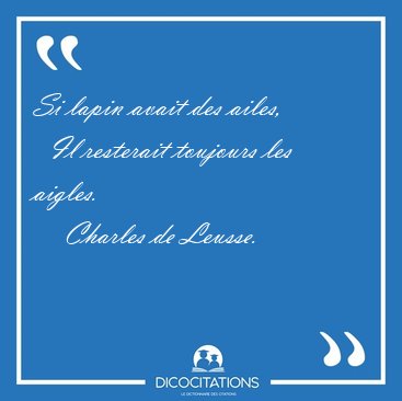 ![Si lapin avait des ailes, Il resterait toujours les [...] - Charles de Leusse... Si lapin avait des ailes, Il resterait toujours les [...] - Charles de Leusse...](/imagescitations/Si_lapin_avait_des_ailes_Il_resterait_toujours_les_-_Charles_de_Leusse-82482.jpg)