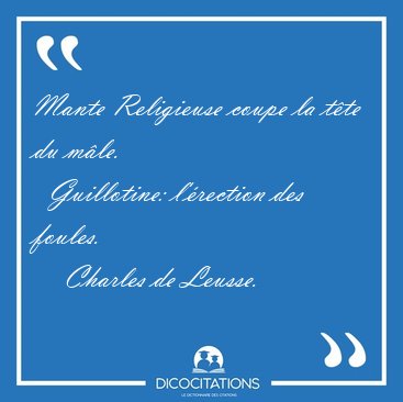 ![Mante Religieuse coupe la tête du mâle. Guillotine: [...] - Charles de Leusse... Mante Religieuse coupe la tête du mâle. Guillotine: [...] - Charles de Leusse...](/imagescitations/Mante_Religieuse_coupe_la_tete_du_male_Guillotine_-_Charles_de_Leusse-82787.jpg)