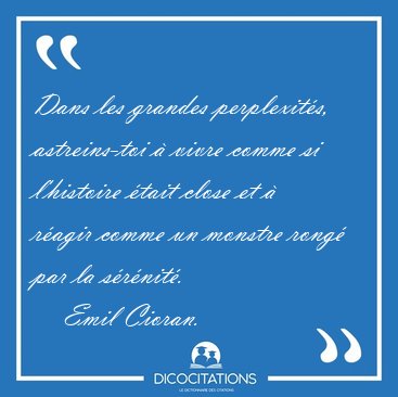 Dans les grandes perplexités, astreins-toi à vivre comme si l'histoire était close et à réagir comme un monstre rongé par la sérénité.
