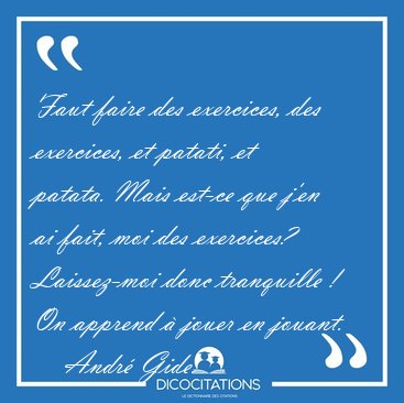 ![Faut faire des exercices, des exercices, et patati, et patata. [...] - André Gide... Faut faire des exercices, des exercices, et patati, et patata. [...] - André Gide...](/imagescitations/Faut_faire_des_exercices_des_exercices_et_patati_et_patata_-_Andre_Gide-83187.jpg)