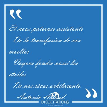 ![Et nous paternes assistants De la transfusion de nos moelles [...] - Antonin Artaud... Et nous paternes assistants De la transfusion de nos moelles [...] - Antonin Artaud...](/imagescitations/Et_nous_paternes_assistants_De_la_transfusion_de_nos_moelles_-_Antonin_Artaud-83215.jpg)