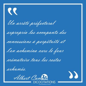![Un arrêté préfectoral expropria les occupants des concessions à [...] - Albert Camus... Un arrêté préfectoral expropria les occupants des concessions à [...] - Albert Camus...](/imagescitations/Un_arrete_prefectoral_expropria_les_occupants_des_concessions_a_-_Albert_Camus-83218.jpg)