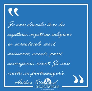 ![Je vais dévoiler tous les mystères: mystères religieux ou [...] - Arthur Rimbaud... Je vais dévoiler tous les mystères: mystères religieux ou [...] - Arthur Rimbaud...](/imagescitations/Je_vais_devoiler_tous_les_mysteres_mysteres_religieux_ou_-_Arthur_Rimbaud-83766.jpg)