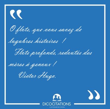 ![O flots, que vous savez de lugubres histoires ! Flots [...] - Victor Hugo... O flots, que vous savez de lugubres histoires ! Flots [...] - Victor Hugo...](/imagescitations/O_flots_que_vous_savez_de_lugubres_histoires_Flots_-_Victor_Hugo-84246.jpg)