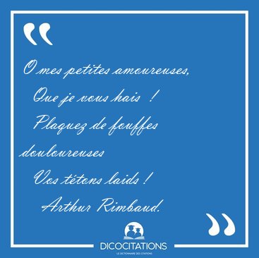 ![O mes petites amoureuses, Que je vous hais ! Plaquez de [...] - Arthur Rimbaud... O mes petites amoureuses, Que je vous hais ! Plaquez de [...] - Arthur Rimbaud...](/imagescitations/O_mes_petites_amoureuses_Que_je_vous_hais_Plaquez_de_-_Arthur_Rimbaud-84445.jpg)