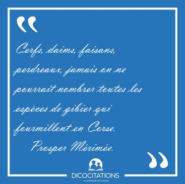 ![Cerfs, daims, faisans, perdreaux, jamais on ne pourrait nombrer [...] - Prosper Mérimée... Cerfs, daims, faisans, perdreaux, jamais on ne pourrait nombrer [...] - Prosper Mérimée...](/imagescitations/Cerfs_daims_faisans_perdreaux_jamais_on_ne_pourrait_nombrer_-_Prosper_Merimee-84479.jpg)
