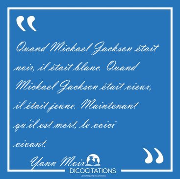 ![Quand Mickael Jackson était noir, il était blanc. Quand Mickael [...] - Yann Moix... Quand Mickael Jackson était noir, il était blanc. Quand Mickael [...] - Yann Moix...](/imagescitations/Quand_Mickael_Jackson_etait_noir_il_etait_blanc_Quand_Mickael_-_Yann_Moix-84732.jpg)