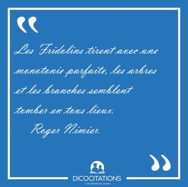 ![Les Fridolins tirent avec une monotonie parfaite, les arbres et [...] - Roger Nimier... Les Fridolins tirent avec une monotonie parfaite, les arbres et [...] - Roger Nimier...](/imagescitations/Les_Fridolins_tirent_avec_une_monotonie_parfaite_les_arbres_et_-_Roger_Nimier-84746.jpg)