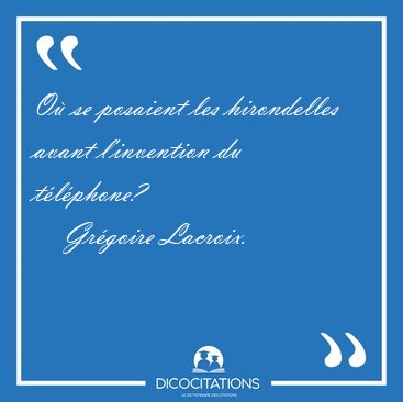 ![Où se posaient les hirondelles avant l'invention du [...] - Grégoire Lacroix... Où se posaient les hirondelles avant l'invention du [...] - Grégoire Lacroix...](/imagescitations/Ou_se_posaient_les_hirondelles_avant_l_invention_du_-_Gregoire_Lacroix-8500.jpg)