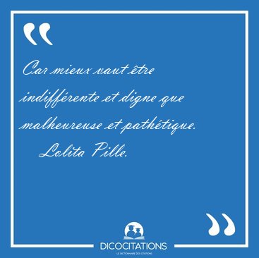 Car mieux vaut être indifférente et digne que malheureuse et pathétique.