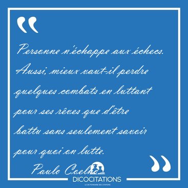 Personne n'échappe aux échecs. Aussi, mieux vaut-il perdre quelques combats en luttant pour ses rêves que d'être battu sans seulement savoir pour quoi on lutte.