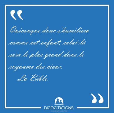 Quiconque donc s'humiliera comme cet enfant, celui-là sera le plus grand dans le royaume des cieux.