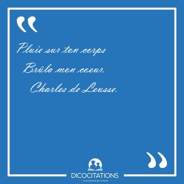 ![Pluie sur ton corps Brûla mon [...] - Charles de Leusse... Pluie sur ton corps Brûla mon [...] - Charles de Leusse...](/imagescitations/Pluie_sur_ton_corps_Brula_mon_-_Charles_de_Leusse-86462.jpg)