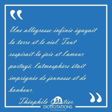![Une allégresse infinie égayait la terre et le ciel. Tout [...] - Théophile Gautier... Une allégresse infinie égayait la terre et le ciel. Tout [...] - Théophile Gautier...](/imagescitations/Une_allegresse_infinie_egayait_la_terre_et_le_ciel_Tout_-_Theophile_Gautier-86536.jpg)
