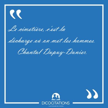 ![Le cimetière, c'est la décharge où on met les [...] - Chantal Dupuy-Dunier... Le cimetière, c'est la décharge où on met les [...] - Chantal Dupuy-Dunier...](/imagescitations/Le_cimetiere_c_est_la_decharge_ou_on_met_les_-_Chantal_Dupuy-Dunier-86572.jpg)