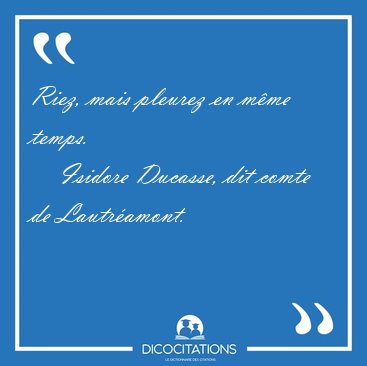 ![Riez, mais pleurez en même [...] - Isidore Ducasse, dit comte de Lautréamont... Riez, mais pleurez en même [...] - Isidore Ducasse, dit comte de Lautréamont...](/imagescitations/Riez_mais_pleurez_en_meme_-_Isidore_Ducasse_dit_comte_de_Lautreamont-8659.jpg)