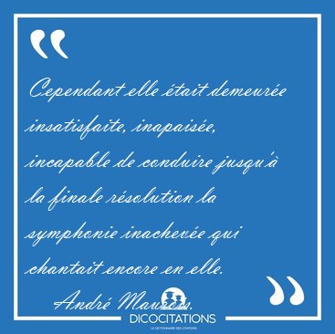 ![Cependant elle était demeurée insatisfaite, inapaisée, incapable [...] - André Maurois... Cependant elle était demeurée insatisfaite, inapaisée, incapable [...] - André Maurois...](/imagescitations/Cependant_elle_etait_demeuree_insatisfaite_inapaisee_incapable_-_Andre_Maurois-86634.jpg)