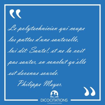 ![Le polytechnicien qui coupe les pattes d'une sauterelle, lui [...] - Philippe Meyer... Le polytechnicien qui coupe les pattes d'une sauterelle, lui [...] - Philippe Meyer...](/imagescitations/Le_polytechnicien_qui_coupe_les_pattes_d_une_sauterelle_lui_-_Philippe_Meyer-86936.jpg)