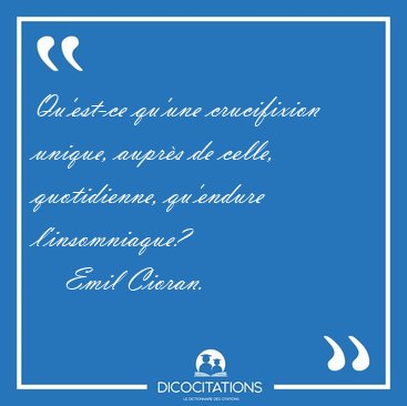 Qu'est-ce qu'une crucifixion unique, auprès de celle, quotidienne, qu'endure l'insomniaque?