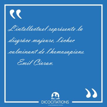 L'intellectuel représente la disgrâce majeure, l'échec culminant de l'homosapiens.