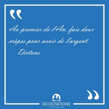 ![Au premier de l'An, fais deux crêpes pour avoir de [...] - Dictons... Au premier de l'An, fais deux crêpes pour avoir de [...] - Dictons...](/imagescitations/Au_premier_de_l_An_fais_deux_crepes_pour_avoir_de_-_Dictons-88144.jpg)