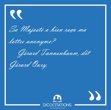 ![Sa Majesté a bien reçu ma lettre [...] - Gérard Tannenbaum, dit Gérard Oury... Sa Majesté a bien reçu ma lettre [...] - Gérard Tannenbaum, dit Gérard Oury...](/imagescitations/Sa_Majeste_a_bien_recu_ma_lettre_-_Gerard_Tannenbaum_dit_Gerard_Oury-88602.jpg)