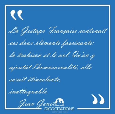 ![La Gestapo Française contenait ces deux éléments fascinants: la [...] - Jean Genet... La Gestapo Française contenait ces deux éléments fascinants: la [...] - Jean Genet...](/imagescitations/La_Gestapo_Francaise_contenait_ces_deux_elements_fascinants_la_-_Jean_Genet-88663.jpg)