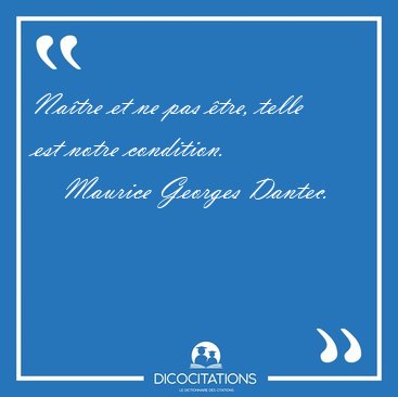 ![Naître et ne pas être, telle est notre [...] - Maurice Georges Dantec... Naître et ne pas être, telle est notre [...] - Maurice Georges Dantec...](/imagescitations/Naitre_et_ne_pas_etre_telle_est_notre_-_Maurice_Georges_Dantec-88959.jpg)