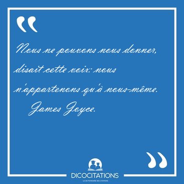 ![Nous ne pouvons nous donner, disait cette voix: nous [...] - James Joyce... Nous ne pouvons nous donner, disait cette voix: nous [...] - James Joyce...](/imagescitations/Nous_ne_pouvons_nous_donner_disait_cette_voix_nous_-_James_Joyce-90121.jpg)