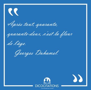 ![Après tout, quarante, quarante-deux, c'est la fleur de [...] - Georges Duhamel... Après tout, quarante, quarante-deux, c'est la fleur de [...] - Georges Duhamel...](/imagescitations/Apres_tout_quarante_quarante-deux_c_est_la_fleur_de_-_Georges_Duhamel-90588.jpg)