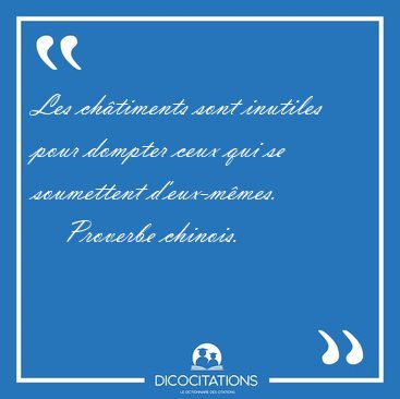 ![Les châtiments sont inutiles pour dompter ceux qui se soumettent [...] - Proverbe chinois... Les châtiments sont inutiles pour dompter ceux qui se soumettent [...] - Proverbe chinois...](/imagescitations/Les_chatiments_sont_inutiles_pour_dompter_ceux_qui_se_soumettent_-_Proverbe_chinois-90703.jpg)