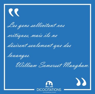 ![Les gens sollicitent vos critiques, mais ils ne désirent [...] - William Somerset Maugham... Les gens sollicitent vos critiques, mais ils ne désirent [...] - William Somerset Maugham...](/imagescitations/Les_gens_sollicitent_vos_critiques_mais_ils_ne_desirent_-_William_Somerset_Maugham-9073.jpg)