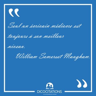 ![Seul un écrivain médiocre est toujours à son meilleur [...] - William Somerset Maugham... Seul un écrivain médiocre est toujours à son meilleur [...] - William Somerset Maugham...](/imagescitations/Seul_un_ecrivain_mediocre_est_toujours_a_son_meilleur_-_William_Somerset_Maugham-9075.jpg)