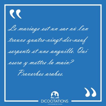 ![Le mariage est un sac où l'on trouve quatre-vingt-dix-neuf [...] - Proverbes arabes... Le mariage est un sac où l'on trouve quatre-vingt-dix-neuf [...] - Proverbes arabes...](/imagescitations/Le_mariage_est_un_sac_ou_l_on_trouve_quatre-vingt-dix-neuf_-_Proverbes_arabes-91142.jpg)
