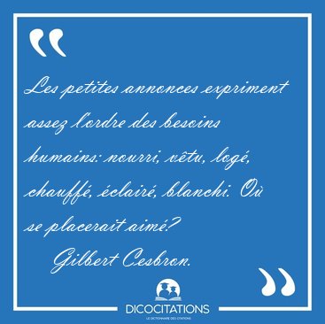 ![Les petites annonces expriment assez l'ordre des besoins [...] - Gilbert Cesbron... Les petites annonces expriment assez l'ordre des besoins [...] - Gilbert Cesbron...](/imagescitations/Les_petites_annonces_expriment_assez_l_ordre_des_besoins_-_Gilbert_Cesbron-91279.jpg)