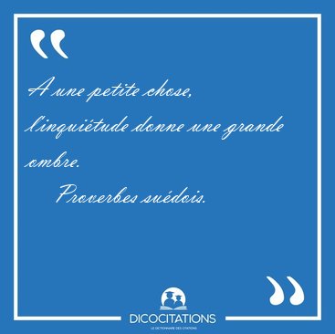 ![A une petite chose, l'inquiétude donne une grande [...] - Proverbes suédois... A une petite chose, l'inquiétude donne une grande [...] - Proverbes suédois...](/imagescitations/A_une_petite_chose_l_inquietude_donne_une_grande_-_Proverbes_suedois-91337.jpg)