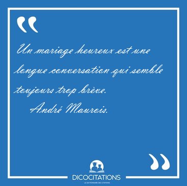 ![Un mariage heureux est une longue conversation qui semble [...] - André Maurois... Un mariage heureux est une longue conversation qui semble [...] - André Maurois...](/imagescitations/Un_mariage_heureux_est_une_longue_conversation_qui_semble_-_Andre_Maurois-9139.jpg)