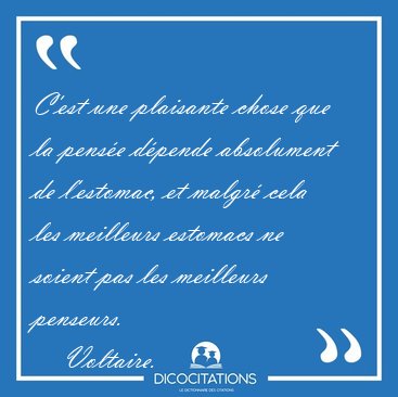 C'est une plaisante chose que la pensée dépende absolument de l'estomac, et malgré cela les meilleurs estomacs ne soient pas les meilleurs penseurs.