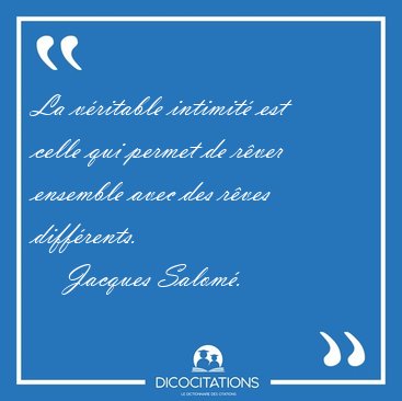 La véritable intimité est celle qui permet de rêver ensemble avec des rêves différents.