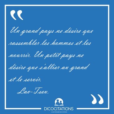 Un grand pays ne désire que rassembler les hommes et les nourrir. Un petit pays ne désire que s'allier au grand et le servir.