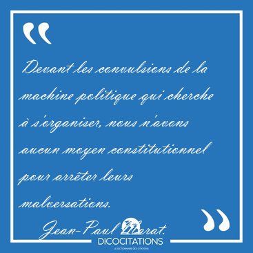 Devant les convulsions de la machine politique qui cherche à s'organiser, nous n'avons aucun moyen constitutionnel pour arrêter leurs malversations.