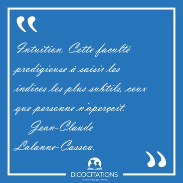 ![Intuition. Cette faculté prodigieuse à saisir les indices les [...] - Jean-Claude Lalanne-Cassou... Intuition. Cette faculté prodigieuse à saisir les indices les [...] - Jean-Claude Lalanne-Cassou...](/imagescitations/Intuition_Cette_faculte_prodigieuse_a_saisir_les_indices_les_-_Jean-Claude_Lalanne-Cassou-92537.jpg)