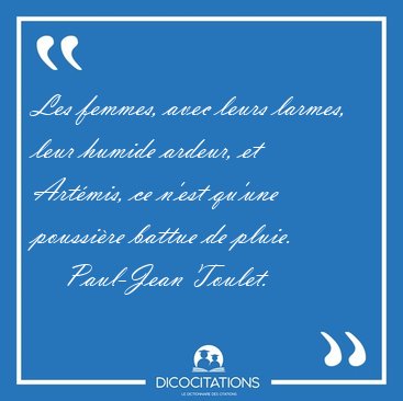 ![Les femmes, avec leurs larmes, leur humide ardeur, et Artémis, [...] - Paul-Jean Toulet... Les femmes, avec leurs larmes, leur humide ardeur, et Artémis, [...] - Paul-Jean Toulet...](/imagescitations/Les_femmes_avec_leurs_larmes_leur_humide_ardeur_et_Artemis_-_Paul-Jean_Toulet-92636.jpg)